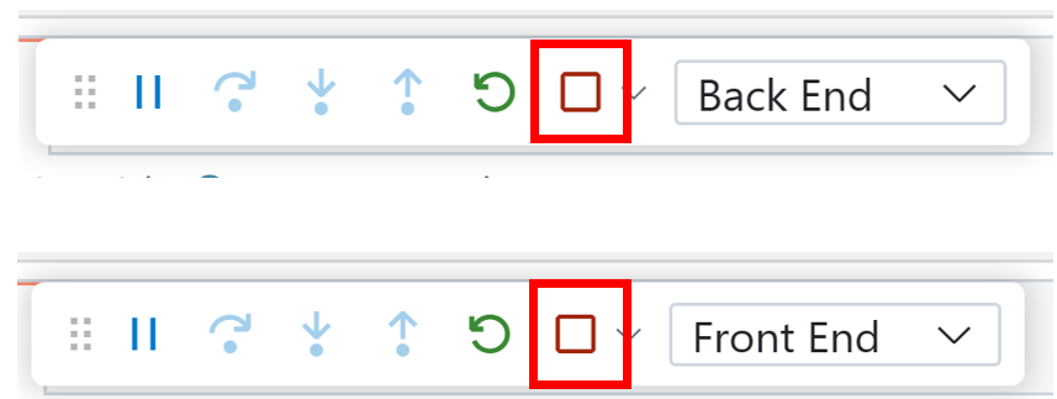To stop running, return to VS Code, and click Stop twice in the debug toolbar.